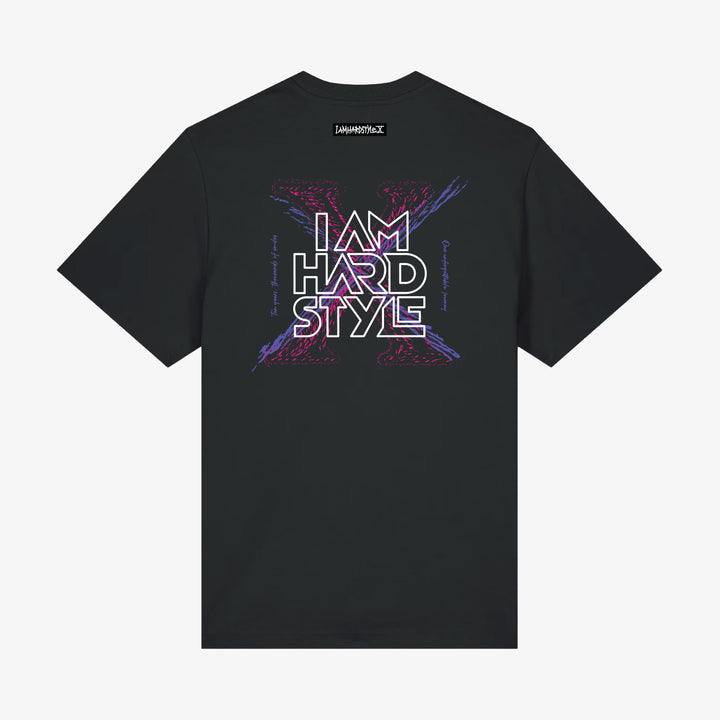 Woven label details on the front hem and inside neck add a custom I AM HARDSTYLE signature to the design.